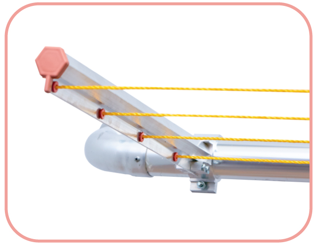 50 mm yuvarlak alüminyum ve metal balkon korkuluklarına monte edilen 2 adet koldan oluşan, 2 kol arasına ip takılan, alüminyumdan üretilmiş çamaşır kurutma askısı