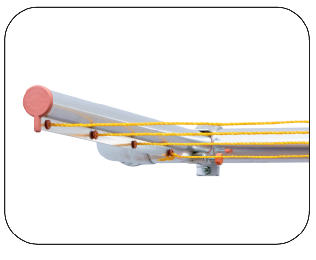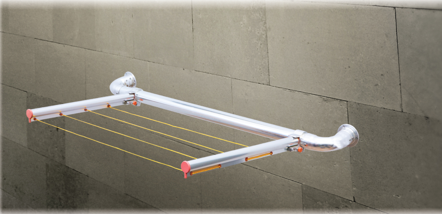 50 mm yuvarlak alüminyum ve metal balkon korkuluklarına monta edilen 2 adet koldan oluşan, 2 kol arasına ip takılan, ip aralıkları ayarlanabilen makaralı kullanılmadığı zamanlarda katlanabilen, alüminyumdan üretilmiş çamaşır kurutma askısı